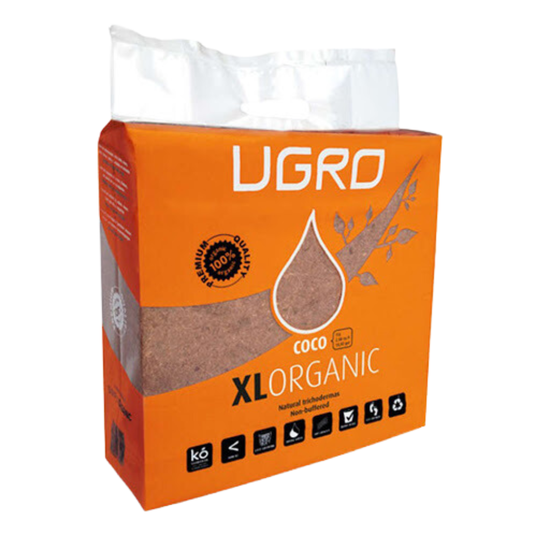 XL Organic består av ett 5 kg block, pressad och dehydrerad kokospeat med en låg fiberprocent. Detta är ett organiskt substrat från början. Tillverkad av organiskt certifierat råmaterial och listat i OMRI. Man kan uppnå 70 liter kokosnötssubstrat genom att tillsätta 18 liter vatten.