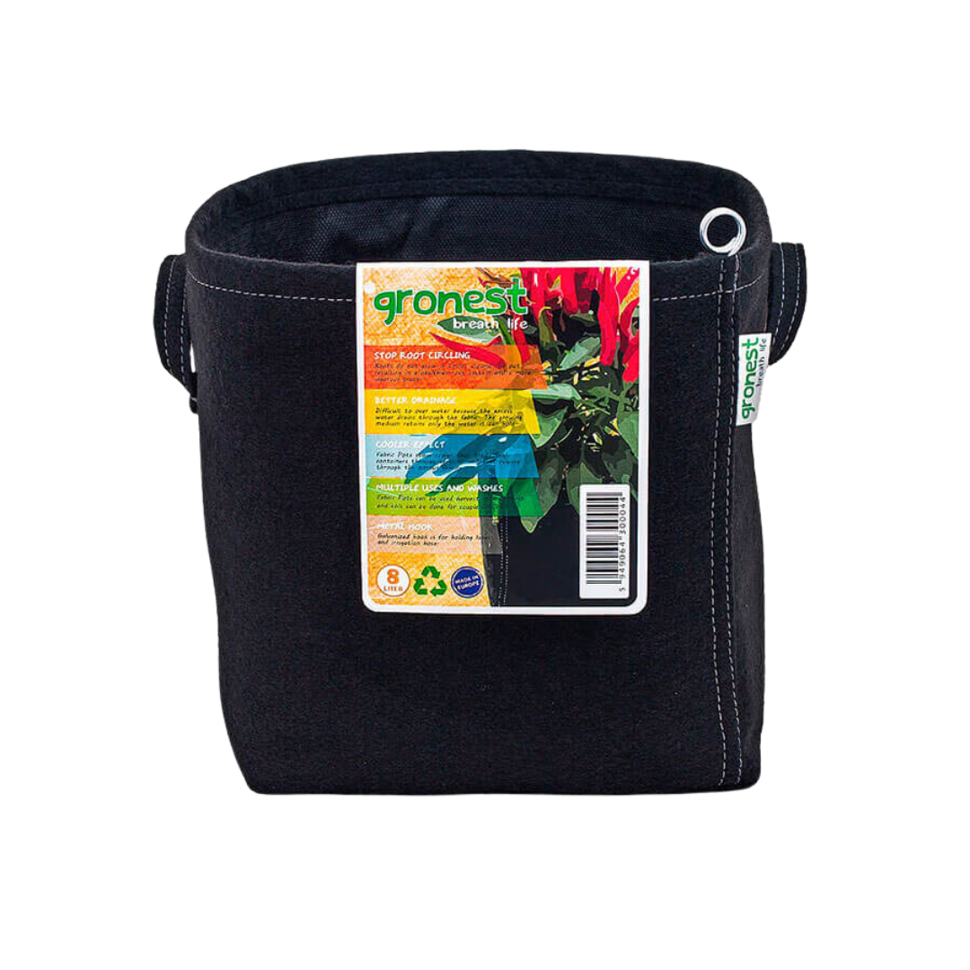 Företaget Gronest har konstruerat en tekniskt avancerad tygbehållare, med hjälp av dess proprietära “Aqua Breathe” lager. Med denna högutvecklade geotextil har Gronest uppnått det optimala i hållbarhet, luftning och fuktbevarande i en enda produkt. Detta är den ideala behållaren för vissa av de mest populära hydroponiska systemen, eftersom näringsämnen lätt kan passera in och ut genom det fina kvalitetsmaterialet. En fördel med dessa krukor är att de är svåra att övervattna. Detta beror på att överskottsvattnet dränerar genom tyget. Växtmediet behåller endast det vatten det kan hålla. Dessa tygkrukor förblir svalare än traditionella krukor. Tygkrukor kan användas skörd efter skörd, vilket är en stor fördel.