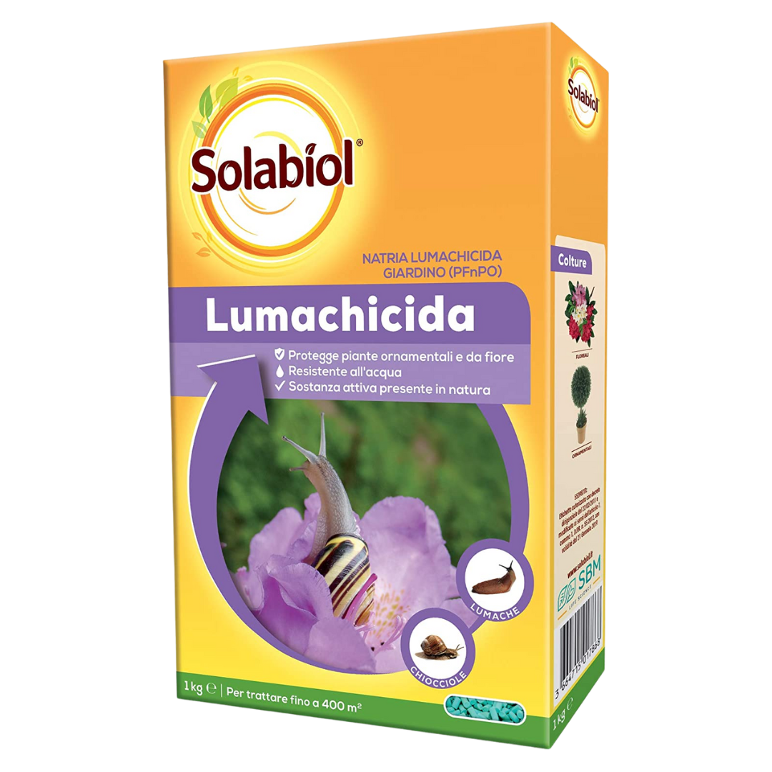 Lumachicida från Solabiol är ett biologiskt snigelmedel i granulatform baserat på järnfosfat, som är en aktiv substans av naturligt ursprung som vanligtvis finns i miljön. Tack vare sin ”våta” formulering är granulerna särskilt motståndskraftiga mot vatten (regn och bevattning). Det har en hög dragningskraft på sniglar som, när de har intagit granulatet, även om de inte dör omedelbart, slutar äta och därför inte skadar de intressanta grödorna.