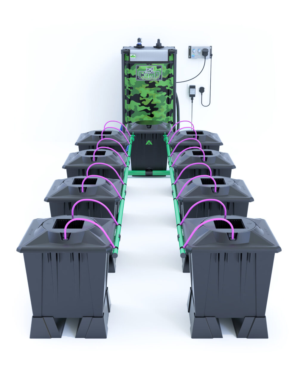Systemspecifikation: Minsta fotavtryck: Längd: 1,9 m Bredd: 0,75 m (Krukor så nära som möjligt) (utan tank) Maximalt fotavtryck: Längd: 2,7 m Bredd: 0,95 m (med levererad mängd rör) (60 cm plantcentraler) CAMO® Tankvolym: 120L rekommendationer:  Plantcentraler: 50-60 cm