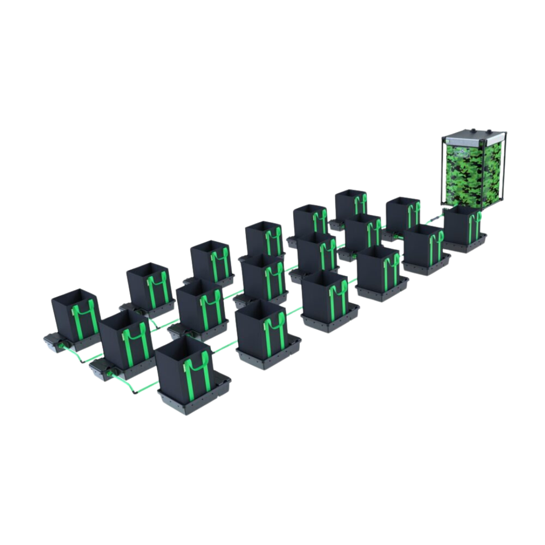 den batteridrivna vattentimer ger dig möjlighet att kontrollera bevattningsfrekvensen. Välj mellan timme, dagligen, varannan eller var tredje dag eller till och med en gång i veckan  Det jämna, enhetliga gödningsschemat gör det möjligt för substraten att delvis torka mellan bevattningscykler, detta kombinerat med våra andningsbara tygkrukor ökar drastiskt syre till rotzonen.