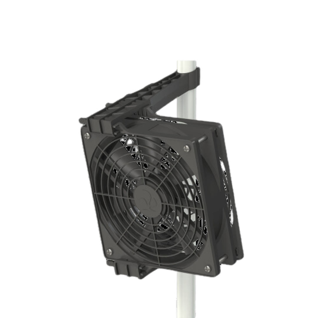 Denna fläkt är designad för att enkelt fästas på 16 eller 19 mm stavar.