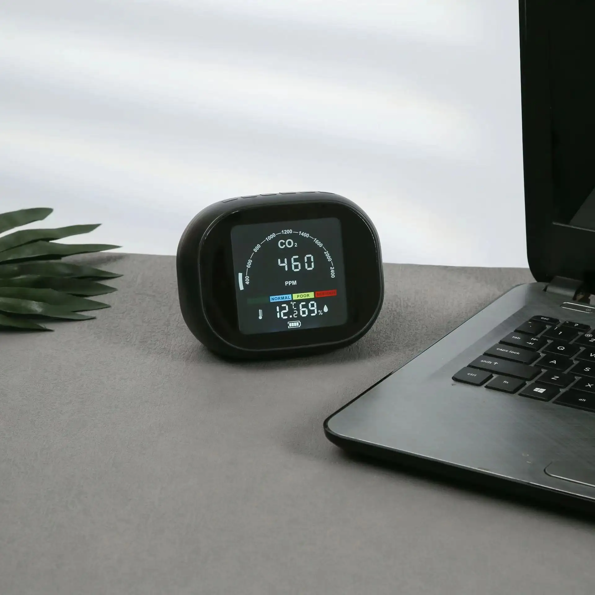 Smart CO2-mätare med visuell och akustisk alarmsignal, och med trafikljus-display för enkel avläsning. Dessutom kan du välja att använda strömförsörjningen eller det trådlösa batteriet.