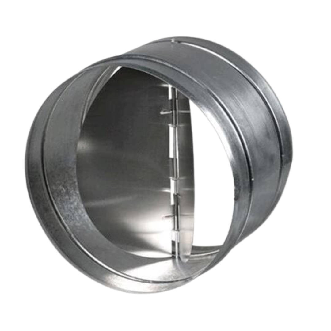 Spjäll med återfjädrande stängning avsett för automatisk återgång när ventilationssystemet är avstängt. Spjällvingarna öppnas av trycket som skapas av luftflödet och stängs av fjädrar.