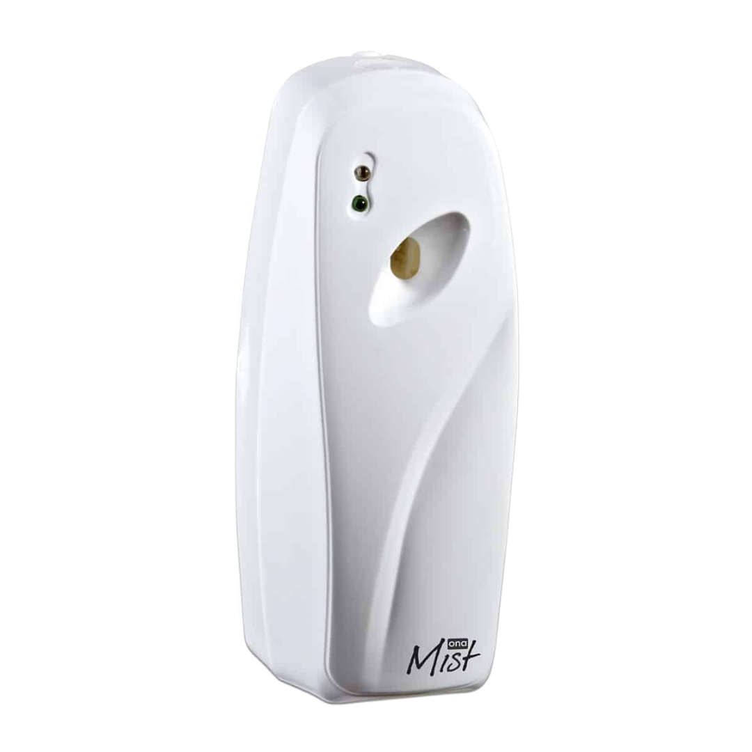 ONA Mist Dispenser har kontrollinställningar för natt, dag eller 24 timmars läge. Det finns också tre programmerbara sprayintervall för ett fullt automatiskt sätt att avlägsna lukt. ONA Mist Dispenser är liten och portabel och är en utmärkt enhet för att kontrollera lukt i små områden som kök, toaletter, husvagnar, garage osv.