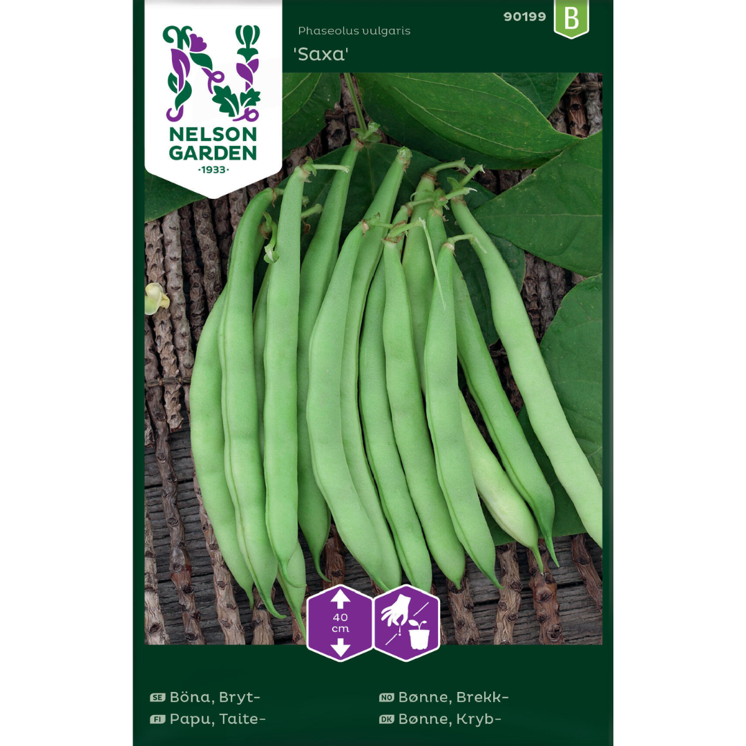 Saxa bönor, kända för sin snabba tillväxt och höga avkastning, är en favorit bland trädgårdsmästare. Dessa bönor erbjuder en perfekt blandning av smak och konsistens, vilket gör dem idealiska för ett brett utbud av kulinariska användningar. Saxa bönor är särskilt resistenta mot vanliga bönsjukdomar och anpassar sig väl till olika jordtyper. De föredrar soliga platser och ger en generös, kontinuerlig skörd, vilket gör dem till ett pålitligt val för både erfarna och nya trädgårdsmästare.