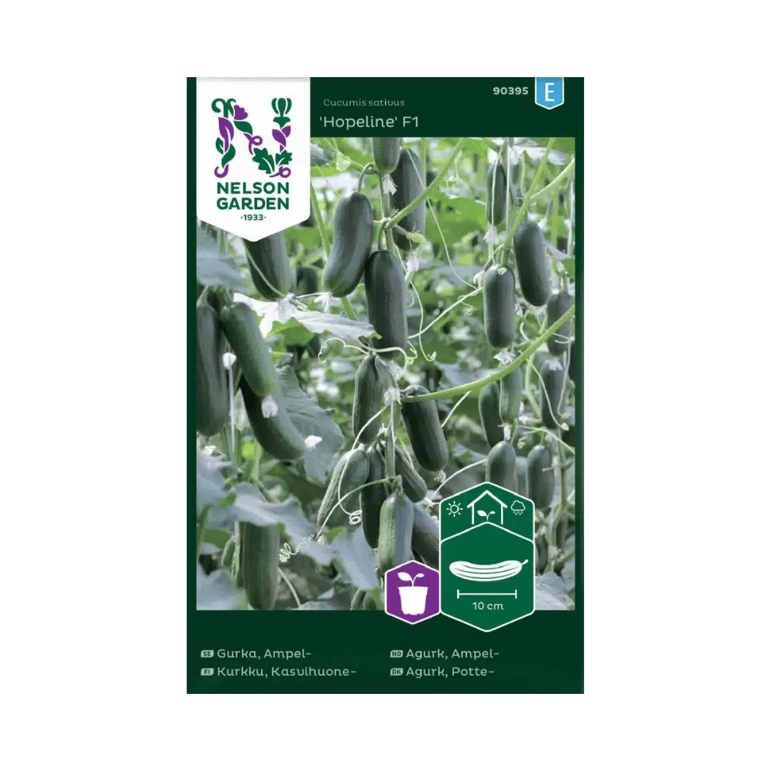 Hopeline F1 är en asiatiskinspirerad mini-gurka som utmärker sig med sitt något torrare, fasta fruktkött och en mer koncentrerad smak än många andra gurkor. Frukterna hålls små (ca. 8–10 cm), vilket gör dem särskilt lämpliga som snacksgurkor, i sallader eller till tapas — särskilt när de skördas kontinuerligt. Plantan kräver ingen pollinering, vilket gör odlingen enkel och pålitlig, även i kruka, ampel eller växthus. Den klättrar eller hänger lätt och passar bra i begränsade odlingsförhållanden. Sådjupet är ca. 2 cm, plantavståndet ca. 50 cm och radavståndet ca. 75 cm; förkultivering rekommenderas i april–maj, och skördeperioden är vanligtvis juli–september. Vid korrekt odling i varm, solig jord och med regelbunden skörd får du en bra avkastning med små, krispiga gurkor under sommaren.