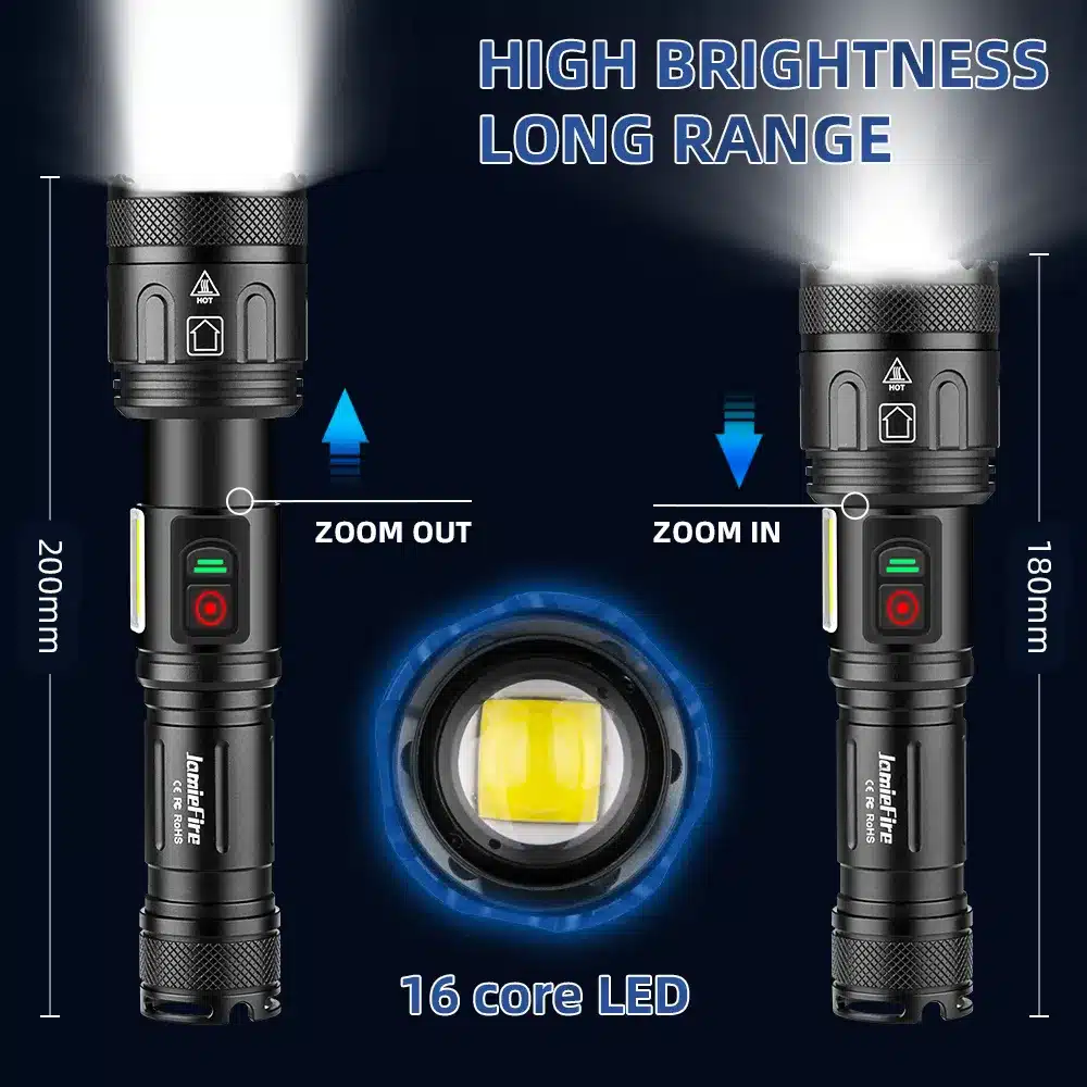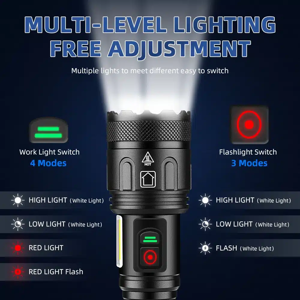 Dual Switch LED-ficklampa – 15.000 lumen & återuppladdningsbart batteri