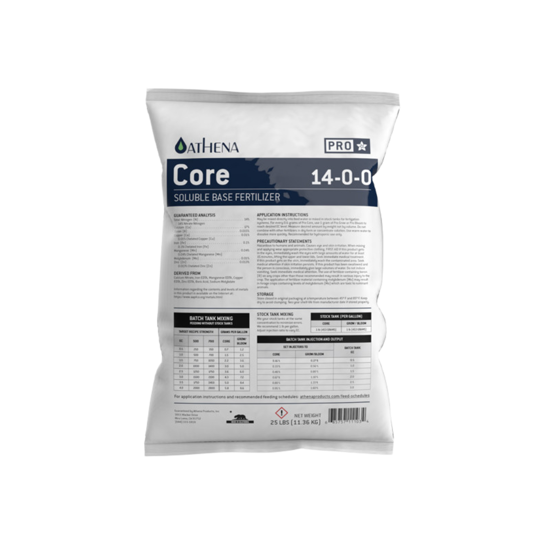 Athena Pro Core är 100 % löslig, fri från sediment och designad för att fungera friktionsfritt i recirkulerande system, automatiserade doseringsanläggningar och hydroponiska installationer. Den stabila jonprofilen och höga råvarukvaliteten gör det till ett självklart val för professionella odlare som önskar konsekventa resultat och full kontroll över näringsprogrammet.
