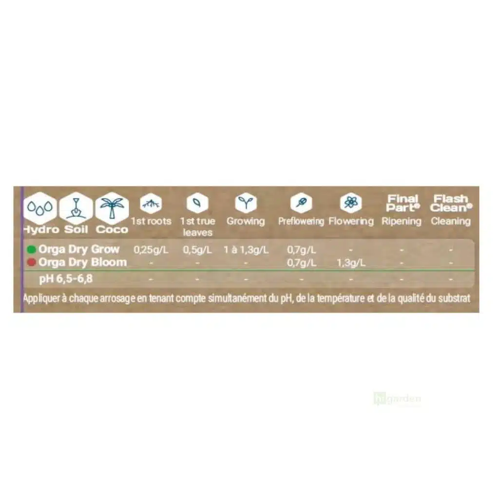 Finns i två olika formuleringar – Grow för vegetativ tillväxt och Bloom för blomning och fruktsättning – Organic DryPart® stödjer dina växter i alla stadier av deras utveckling: