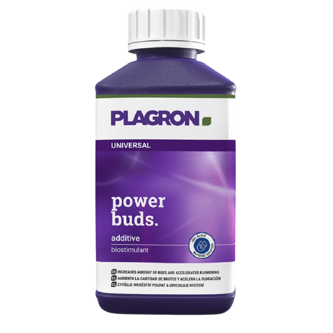 Plagron Power Buds är en biostimulant som ökar knoppsättning och påskyndar blomningen genom att aktivera växters naturliga processer. Den kan användas tillsammans med andra näringsämnen utan att påverka EC-värdet och säkerställer kompakt tillväxt och tidig blomning. Idealisk för både jord- och hydroponiska system