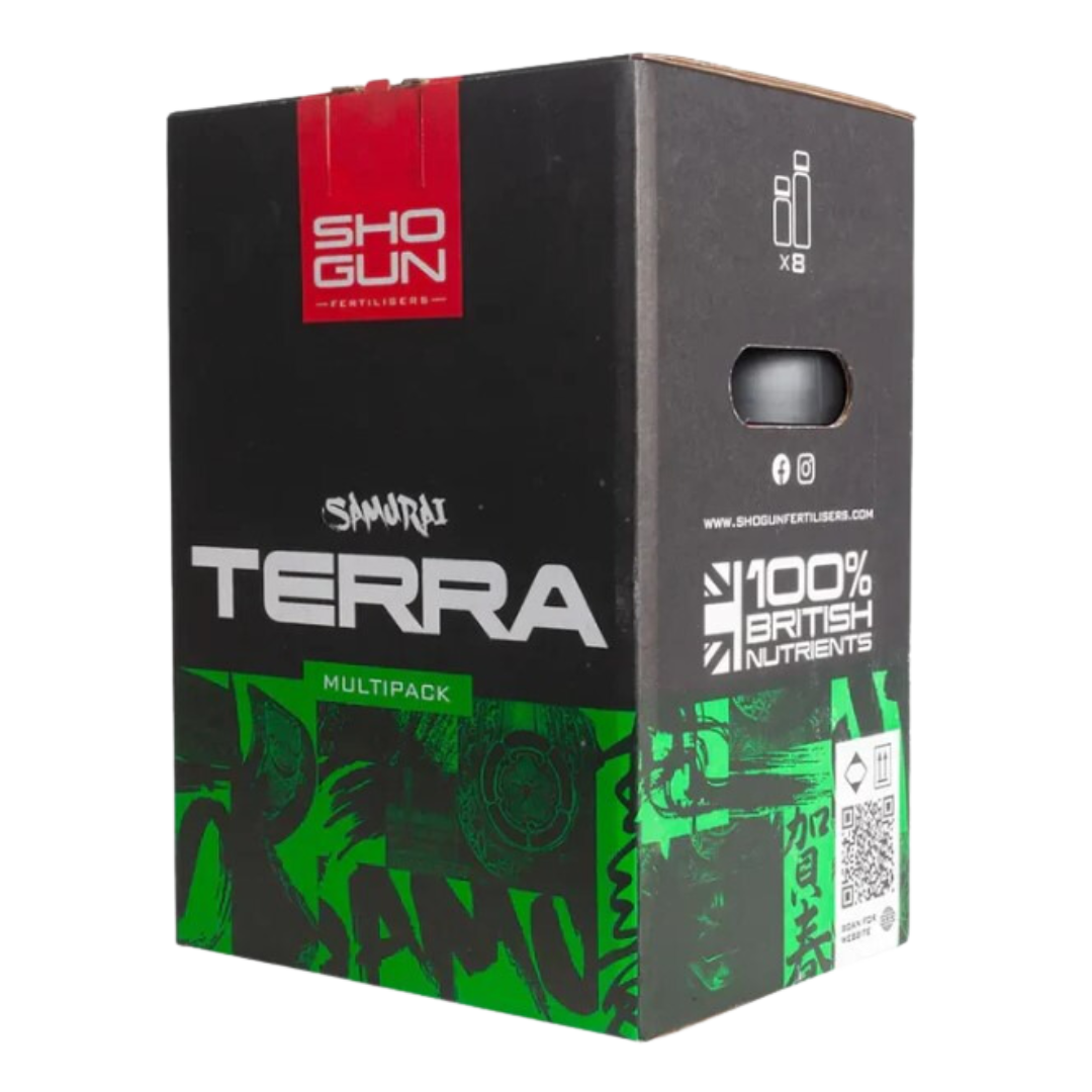 Shogun Terra Multipack är fullpackat med vår fantastiska Samurai Terra Grow och Terra Bloom gödning tillsammans med ett fantastiskt urval av tillsatser: Start, Katana Roots, CalMag, PK Warrior 9/18, Sumo Active Boost och Dragon Force.