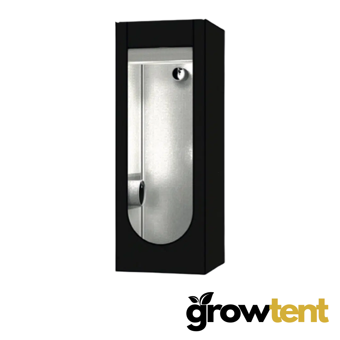 Growtent HS60-U är ett kompakt premium odlingstält, tillverkat av svart 210D Oxford-tyg med silverfodring för optimal ljusreflektion. Tältet har tre ventilationsöppningar och ett ventilationsfönster för effektiv luftcirkulation. Den robusta 16 mm ramen med svarta plastkopplingar, två upphängningsstänger och SBS-dragkedjor säkerställer hållbarhet och enkel montering.